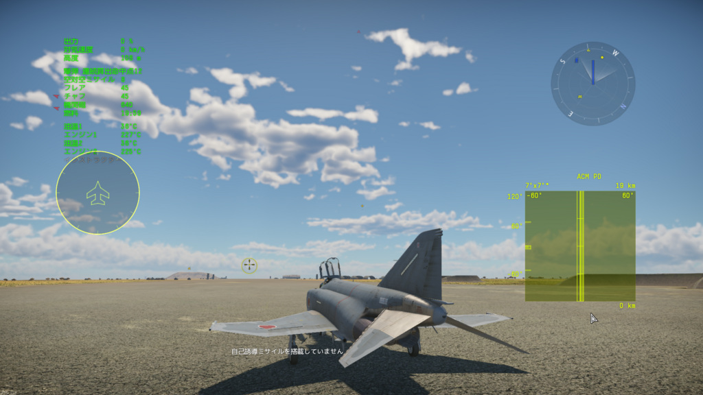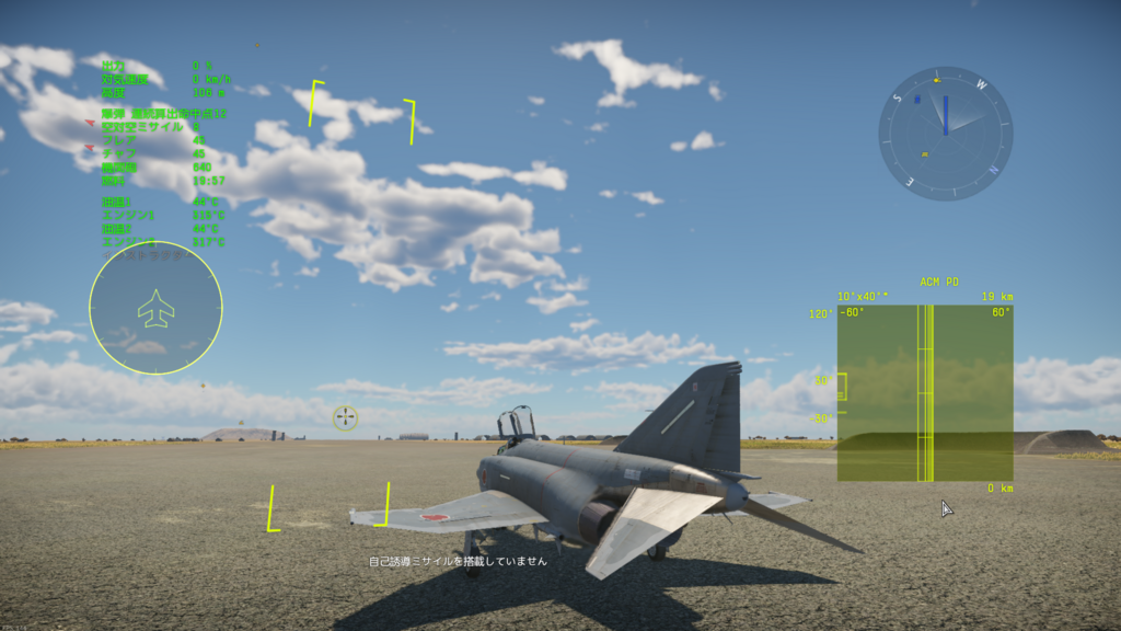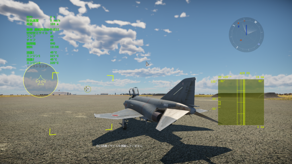強いて言えばF-4Sが出来るHMSがコイツには無いというのは差異だけど、大きな影響はあんま無いしな。レーダーの性能自体もF-16AJと同じようなもんだし、チャフフレアも90発だし、9L×4と7F×4積めるし、四世代と比べたら機体性能が辛いとこあるけど、他のF-4達と比べたらやっぱ今でも強いよなぁ。