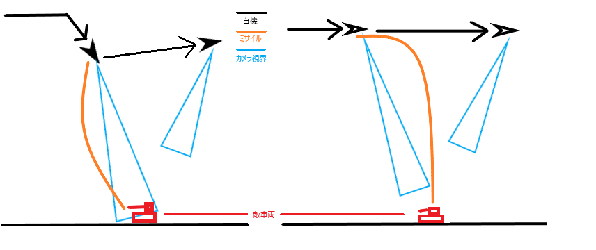 こっちは10km先からレーダーの死角に入られて、白い線と黒い点を狙うしか無い(高高度程ミサイルの旋回も悪くなる)んだし直上に辿り着けば反撃もされないんだから頑張ろう!