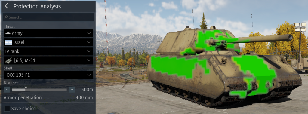 まあ、マウスは当たるBR域ではないというツッコミは置いておいて、もっと上のBRでも複合装甲持ってないやつならObj279以外は抜けるんじゃない?マウスで抜ける場所はこんな感じ