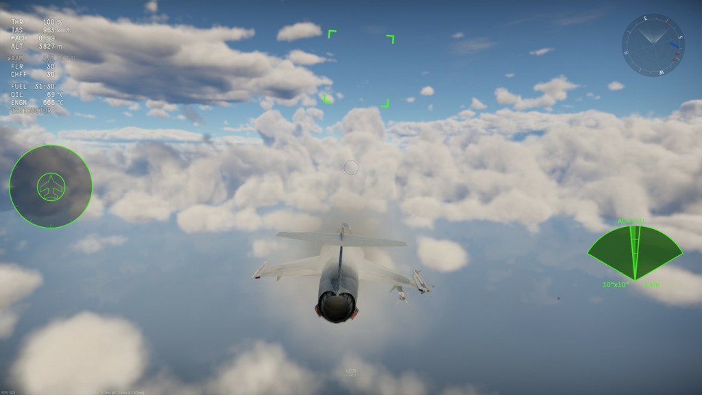 何故か胴体にサイドワインダー積めないせいでミサイルが4発しか持てない、レーダーのルックダウンが機能してないせいでAspideが使い物にならない(実機はPDだったんだろうか?ルックダウン能力獲得というのはよく見るがPDかどうかが分からない)、上枝の通りRWRにバグあり、更にボアサイトロックもバグってて切り替えしてるうちにカーソルが変な所に行くと散々な出来だよ…これら諸々解消されれば強いはずなんだけど