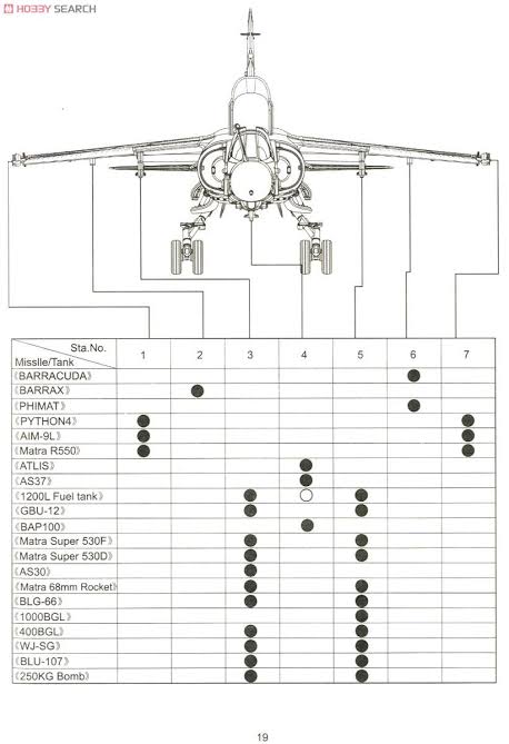 マーテル(対レーダーミサイル)が解禁されればそれは装備出来るかなって感じ。上の2枝氏の挙げているサンプルのAS.30がLじゃないMCLOSの方ならそれも装備できるかもだけど、プラモ(?)の搭載例のようで国籍がごちゃまぜな感じなので仏軍がMCLOS誘導のAS.30を継続使用していたか、誘導装置を持っていたかは分からない