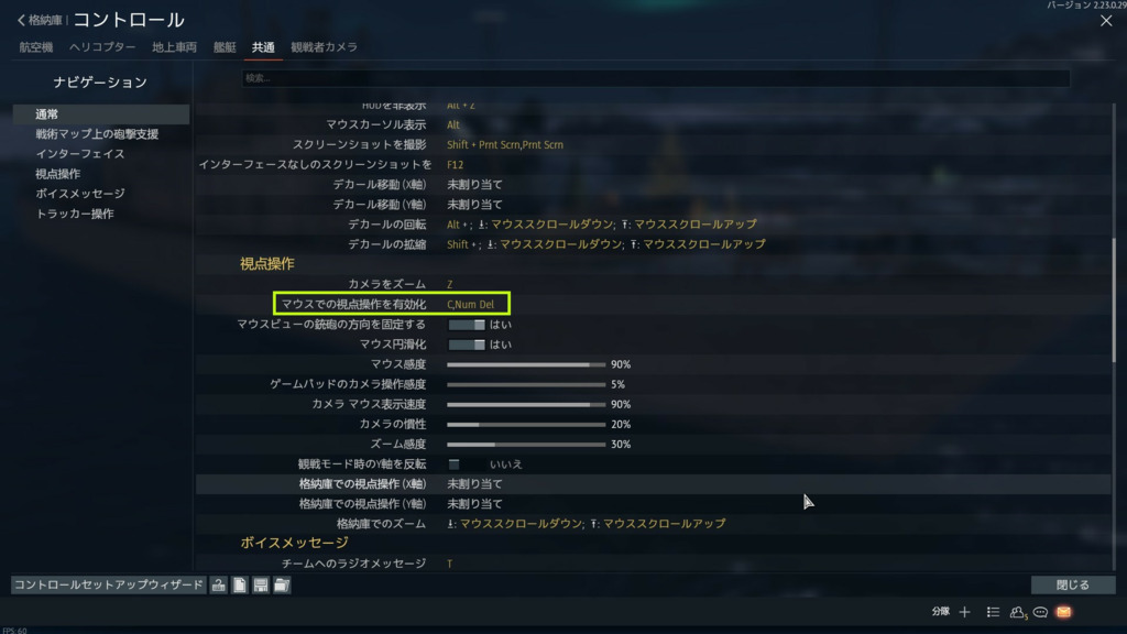 コントロール設定のこのボタンを押す。デフォでCもしくはDelみたいね。
