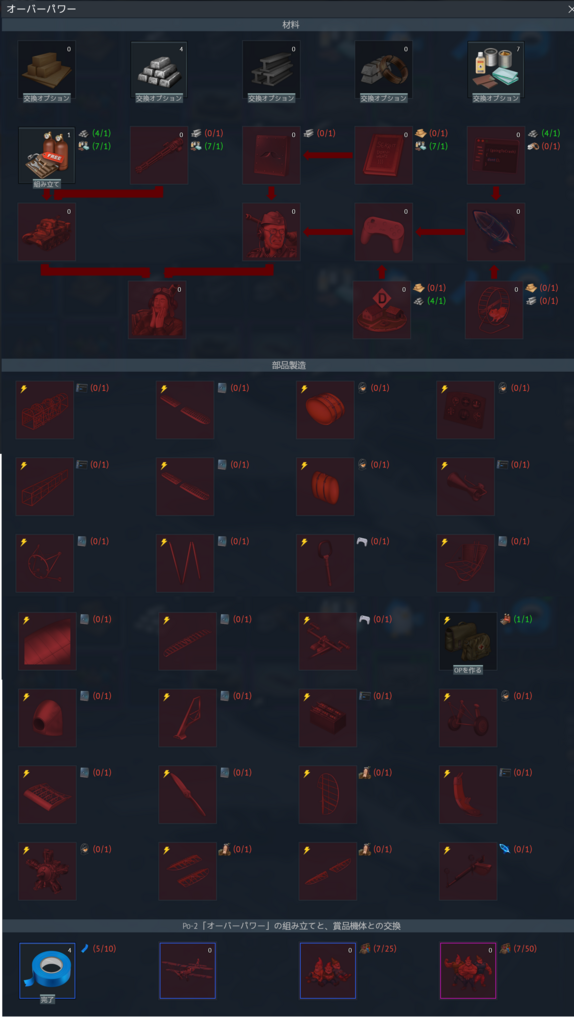 イベント初心者で分からないのですが部品製造で作った物は何に使うのでしょうか。po2はテープロールだけあればいいので疑問です。