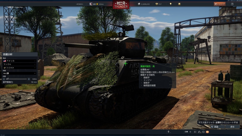 こいつは驚いた。装甲の継ぎ目を斜めから狙うと50mmくらいしかないから抜けるのか。防護分析で試してみればわかるが針の穴を通すレベルだよ。一生に一度の奇跡だねw