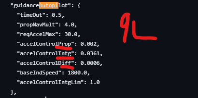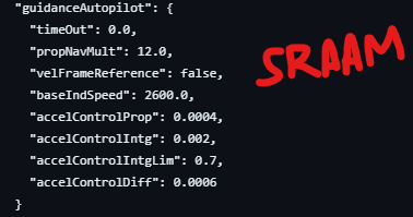 下図datamineのPIDゲイン(←R-73, →aim-9L)でR-73はPゲインが大きく設定されているので発散しているのかと。とぐろまく暴走をさせたく無い場合は発射時の偏差を減らし誤差初期値を少なくすること。これで発散リスクを減らせる。