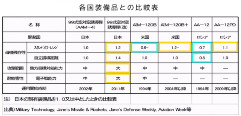 ガイジン的balancedとか日本人の国産兵器への願望とか差っ引いたら、今まで散々言われてる通り「AAM-4(性能はAMRAAMのコピペ)」で実装が一番現実的だと思うよ