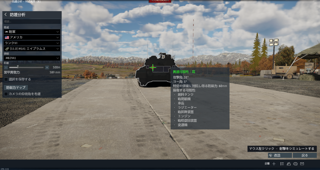 装甲の件に関しては、物理演算プログラムで拘束セラミック複合装甲が表現されてないからなぁ…。拘束セラミック複合装甲は、非拘束セラミック複合装甲と比較して若干の重量増ながら省スペースでも優れた防護性を有するのに、わざとなんじゃねぇか?と疑いたくなるレベルで再現してないという…。まぁ、これに関しては90式戦車A型&B型に限ったことではなく、西側MBT全般に言えることなんだけどさぁ。