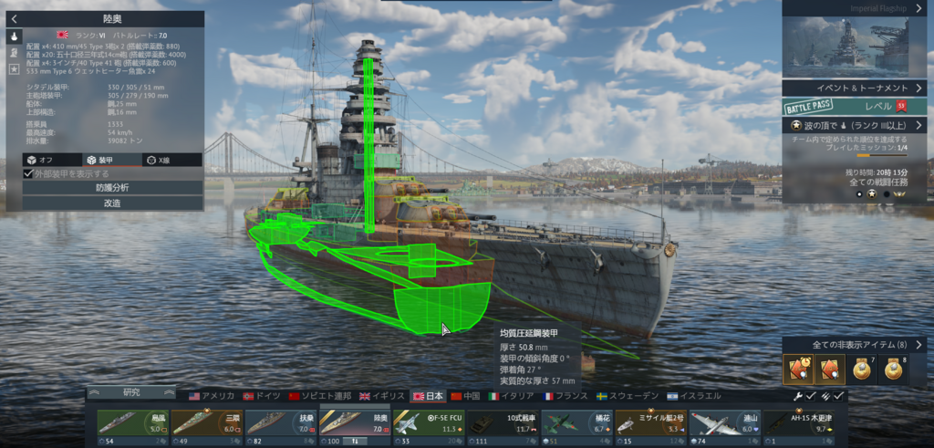アプデ前の環境で乗りたかったよな。優先して破片貫通バグの修正は行われたみたいだけど、榴弾のダメージ量は調整されるまでは戦艦には厳しい環境だわ。