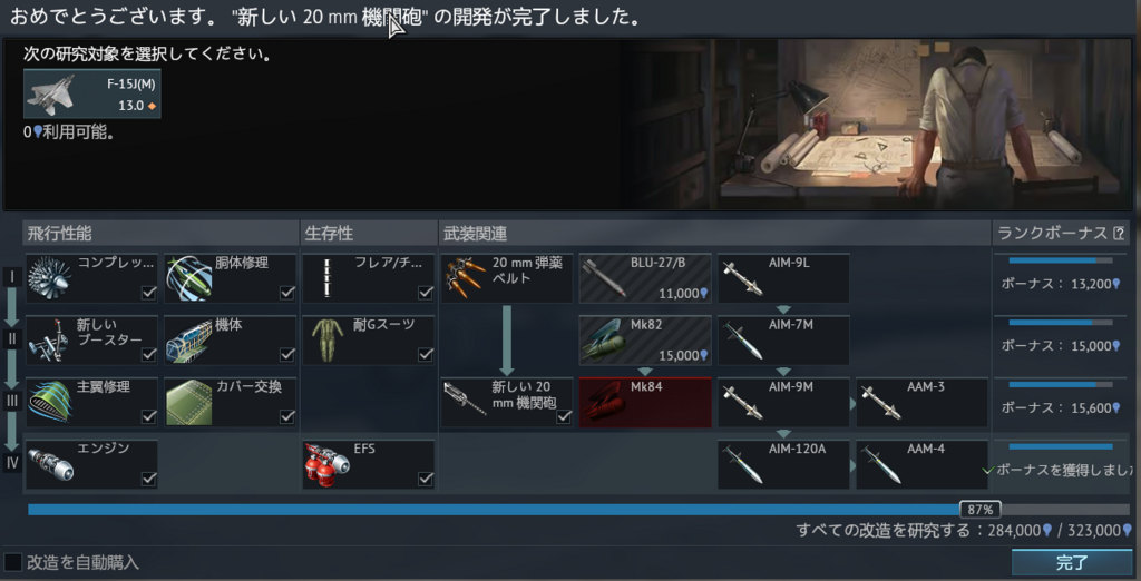 500%ブースターをかけて英サンボルに乗ったところ、中盤は敵の方が残ってたけど皆低空だったから上空からB&Zで理想的かつ一方的な一撃離脱ができて3機撃墜。結果230kSLと24kRP稼げましたとさ