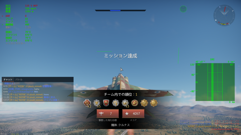 今日初めて空RBで戦闘機10機撃墜のミディアムタスクをクリアできて結構な充実感というか成長を感じた。ちょっと前ならやろうとも思わなかったよ