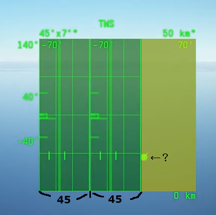 このリンクの最大±45°電子スキャン(до ± 45° электронное сканирование)が事実ならレーダーが一番左の範囲をスキャンしていた場合画像の黄色部分にはビームを向けられないはずでこの範囲に敵が入ってもトラックが続くのはおかしくないか?と思っています