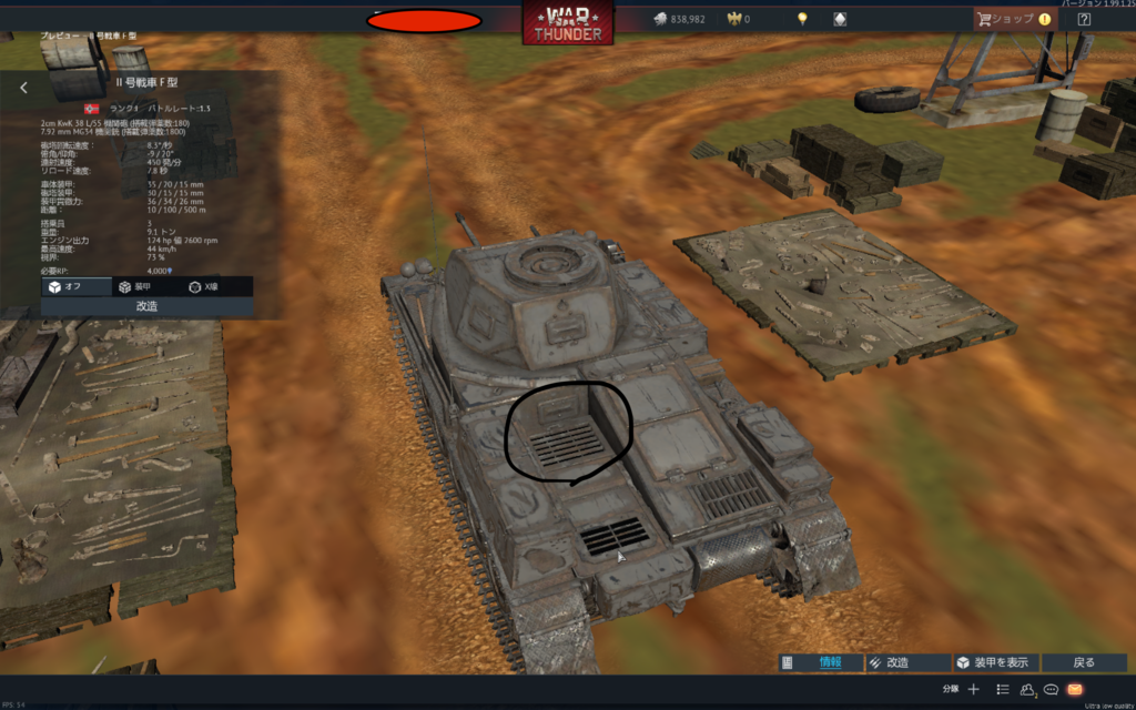 亀った。 実車はともかくゲーム内だとラジエーター部のグリル部は開かないっぽい。その代わり何故かエンジンの上部分が開く。エンジンのところからは絶対出られないと思う。あと画像の車輛はAusf. Cだった