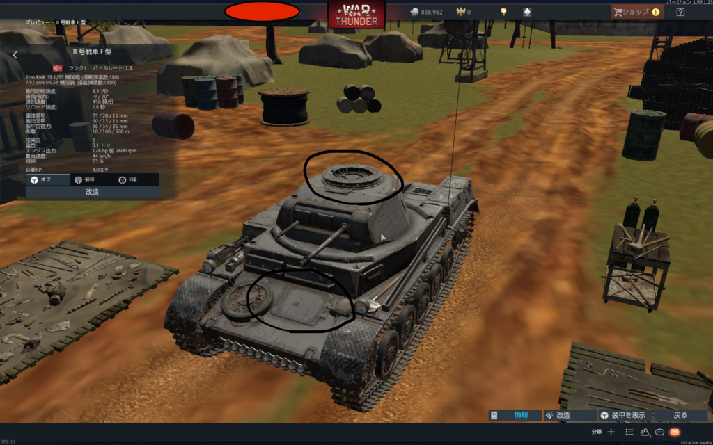 とりあえず運転席前と砲塔で2個はあるよな。底部にもあるかもしれないけど、そもそも3人しか乗らないし、これでほとんど問題ない気がするけど。