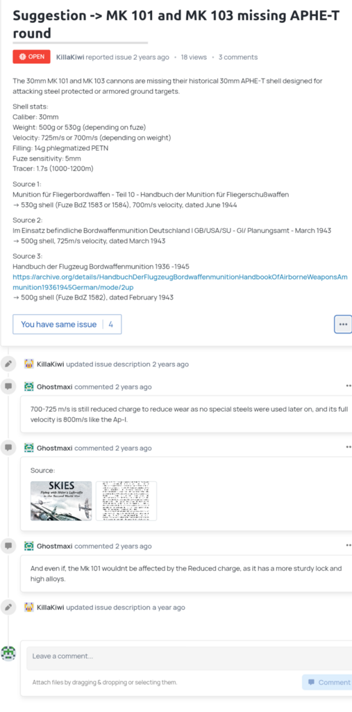 37mmのAPCRを陸戦で使ったことある人ならわかると思うが、あれはMK103のAP-Iより劣る才能なんだよな。それと、MK103と同様に37mmBK37にもAPHEが実在した。でも、ご覧の通りバグレポートは蹴られたり無視されてる。ちゃんと資料まで出てるのにね