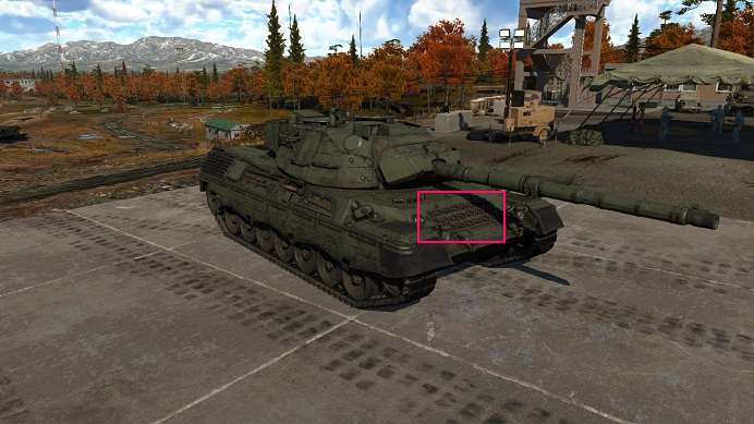 砲手側面のうっすい奴が物入れとは笑う。「装甲ではない」という資料が?砲塔側面モジュール(普段付いてるやつ)は付加装甲装備時に取り外されるという話に基づけばまさしく適合するし、複合サイドスカート扱いで付加装甲の仕様から係数を決めるだけ。ケチ付ける点なし