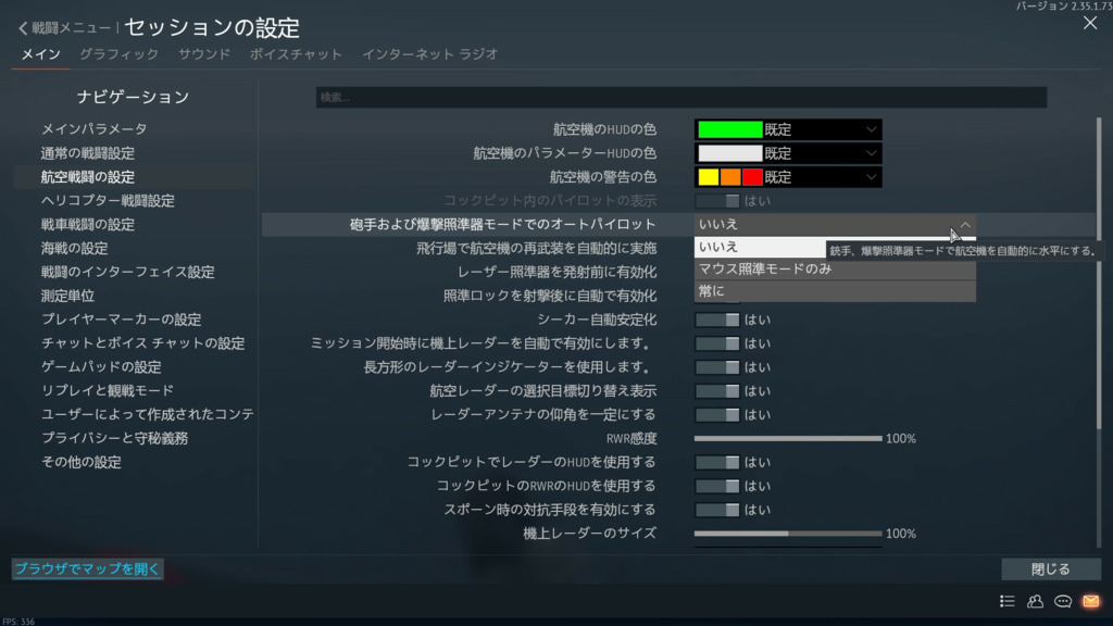 コントロールモードを変えないと銃座視点でキーボード効かなくなるのはここの設定が"マウス照準モードのみ"になってるからだと思う.まあ,爆撃照準視点では自動操縦効いてて欲しい人はコントロールモードトグルする枝のやり方のほうが使い分け効いて良さそうだが.