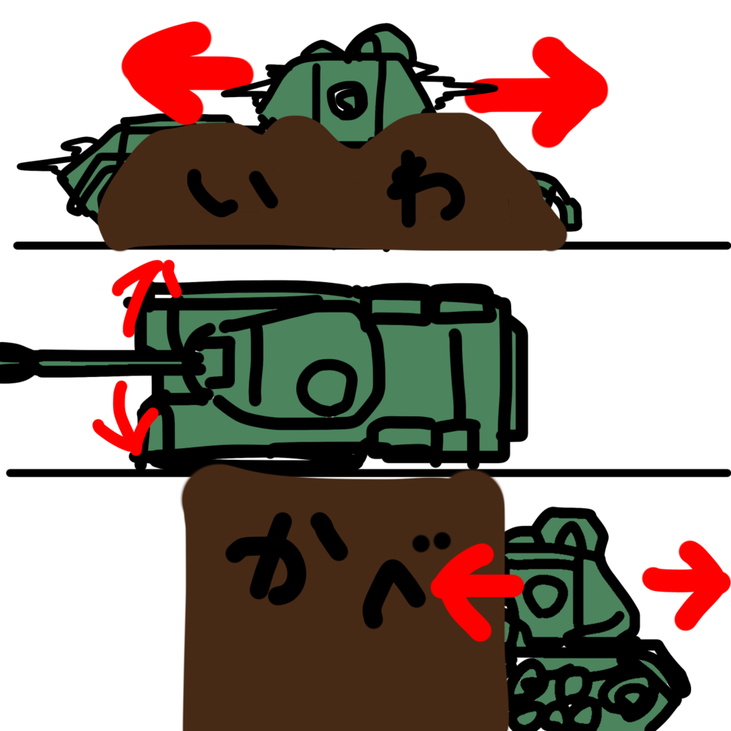 逆豚すると強いよ、車体は70°傾斜の220mmぐらいになる&キューポラ隠せるから実質抜ける範囲が王虎の顔面ぐらい小さくなる。