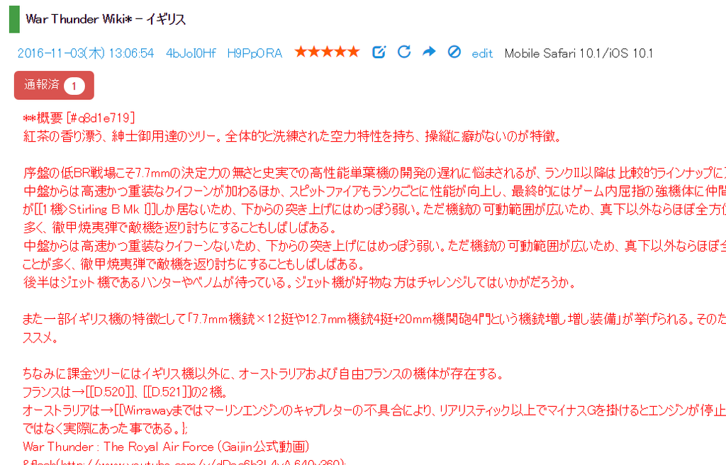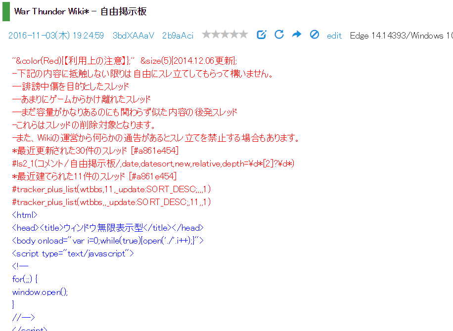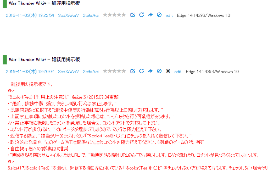 編集会議で見つけました荒らし宣言? https://diffana.wikiwiki.jp/warthunder/logs?did=2016112618062750262