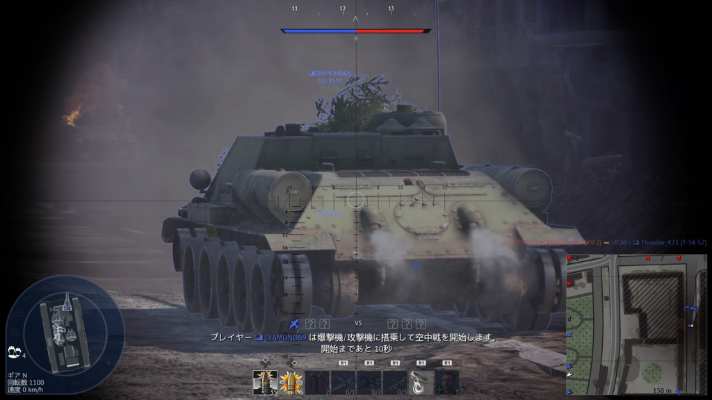 地味に減った俯角が結構痛い。SU-85と比べて視界が狭いのは何故に?