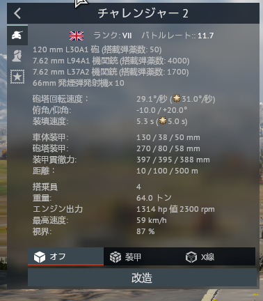 hpが1,217→1,314(hp)か。CR2の場合、重量出力比にすると18.1→19.5(hp/t)か~、約8%程度ではあるけど嬉しいね。後は即応弾だな…!