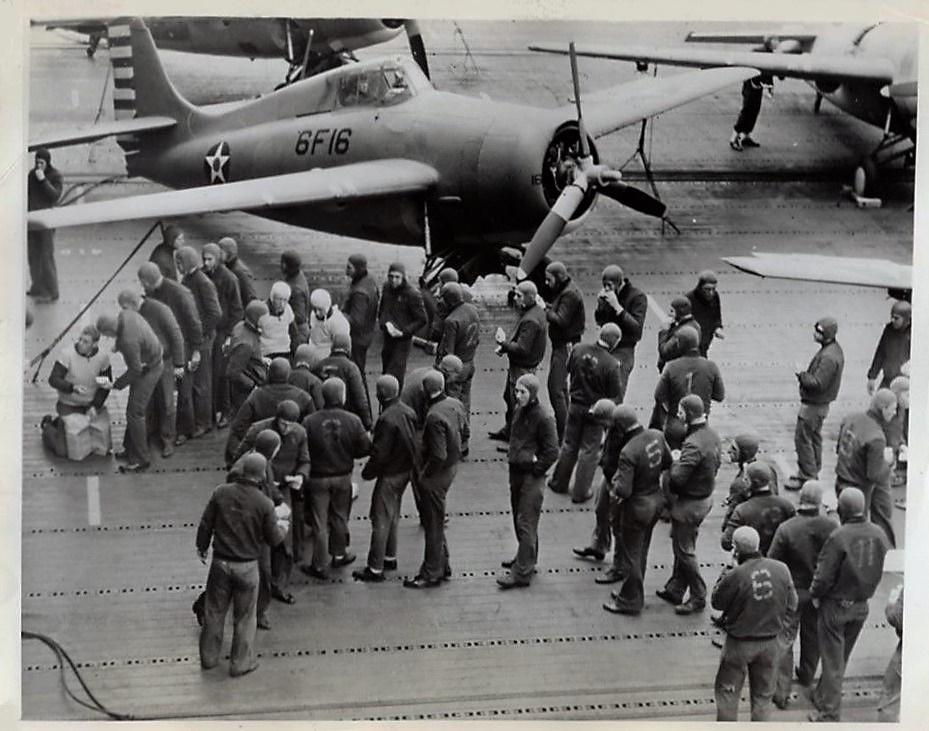 エンプラ万歳サイト曰く、この写真は1942年8月にエンタープライズ艦上で取られたモノらしい。(ミッドウェー海戦前には空母隊のF4F-3は全機F4F-4に更新されている)写ってる機体をよく見るとF4F-4で、判別としては機銃も見えにくいが6丁あるので(発砲により焦げた部分がある。画面では白く映ってる)ただ機体下部は波目型には見えないから厳密にはWTとちょっと違うみたいだが