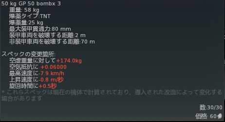 ウィキペディアの記載どおりなら1t分の爆装ができたはずなのにと思ったが、史実のこいつに1t積んだらそのまま墜落しそうだなとも思った