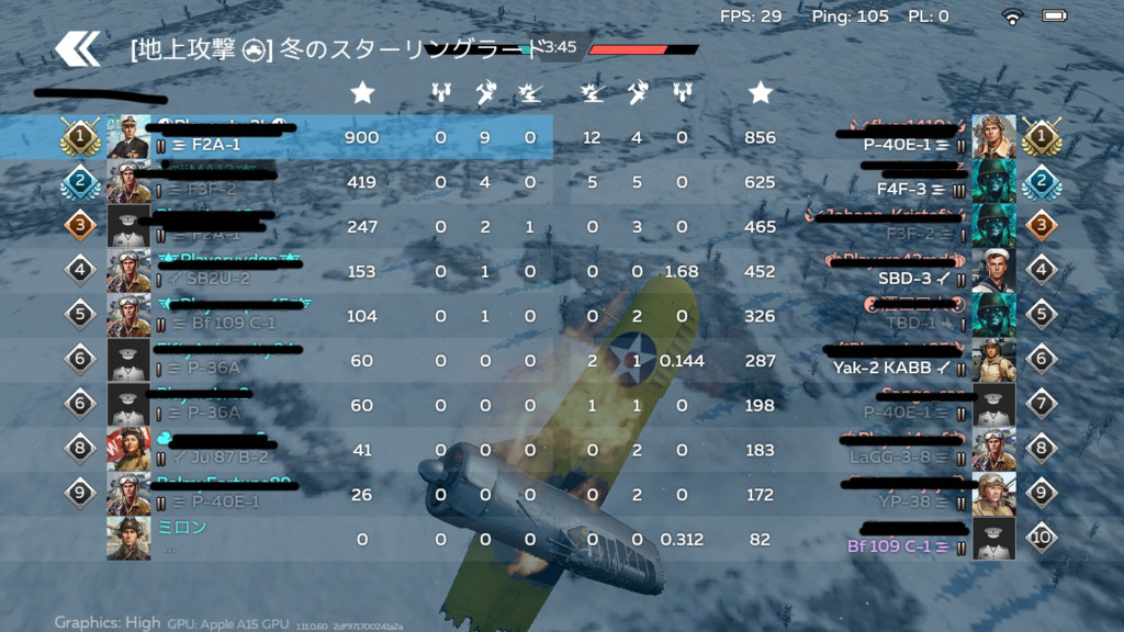 敵機削ってくれる味方機全体通して全然いなかったと思ったらあっ、ふーん(察し)じゃけんスコアゼロの下4人は後で職員室いきましょうね〜💢