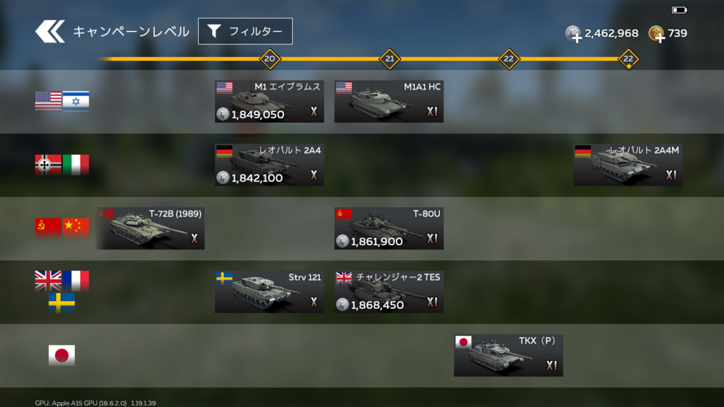 自分の今の開発状況こんな感じですけどつぎツリー制になるならまだrankⅨになってから1度も開発してないイギリスのチャレンジャー2 TES小隊を買うべきですかね?それとT‐80U君も