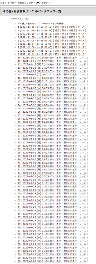 「タイムスタンプを更新せずに「ページの更新」をする」を利用すると差分が発生しているため、実際の日時ではなく以前と同じ日時でバックアップされますと注意書きがあると助かります。