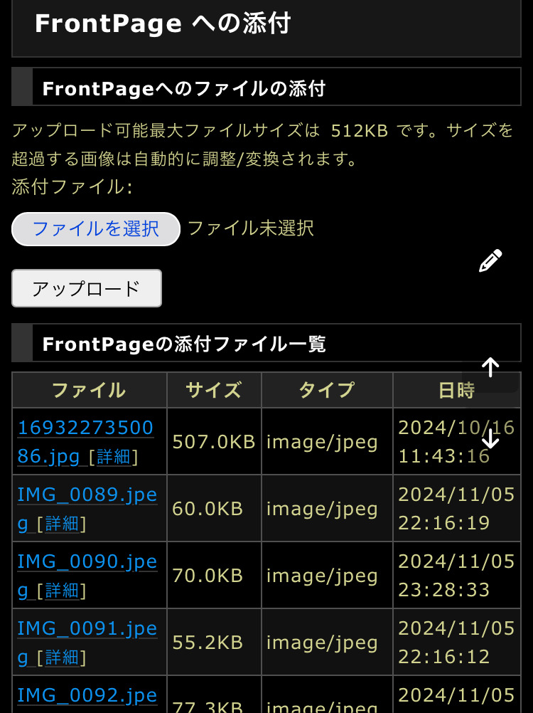 ③全ページの添付ファイル一覧が表示されます。ファイル名[詳細]となっている一覧が表示されるので、削除する必要があるかファイル名の「[詳細]」を一つひとつ押します。