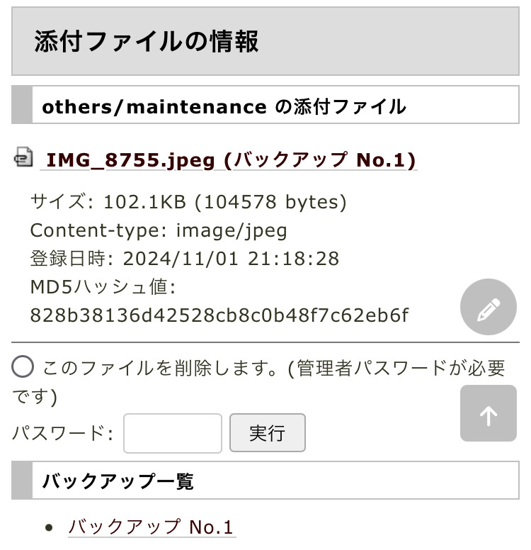 ③バックアップから添付されたファイルの完全削除(管理人のみ)
