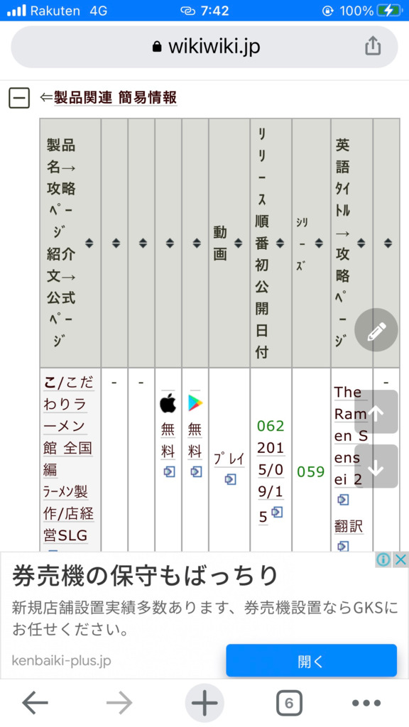 現象が発生しないページの一例 こだわりラーメン館 全国編にある「製品関連 簡易情報」