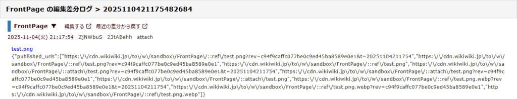 2025年11月4日(火)14時のメンテナンス終了後、ファイル添付時の編集差分ログに大量の文字列が表示されるようになりました。