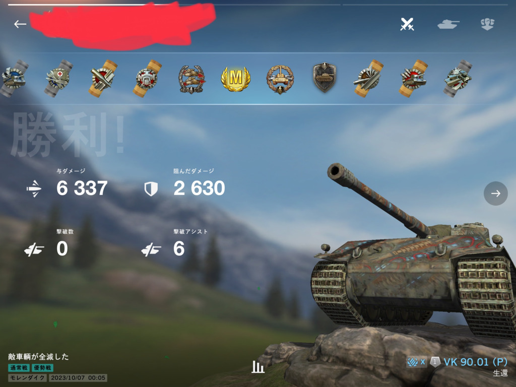 この戦車の性能には大満足なんだけど、一つだけ気になる点があるんだよね。 それは仰角が10度しか取れないことで、ちょっとした丘に乗り上げるだけで撃てなくなってしまって地味に困る。 まあ工夫すればいいだけだから、致命的な問題では無い。 いつか20度ぐらいまでバフされるといいな〜。
