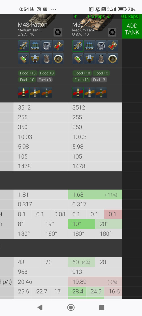 ただパットンにはM60っていう上位互換がいて、それと比べた時はSTBに負けてる性能の差は俯角1°、最高速度3kmまで縮まるし、体力もSTBより50多くなる。