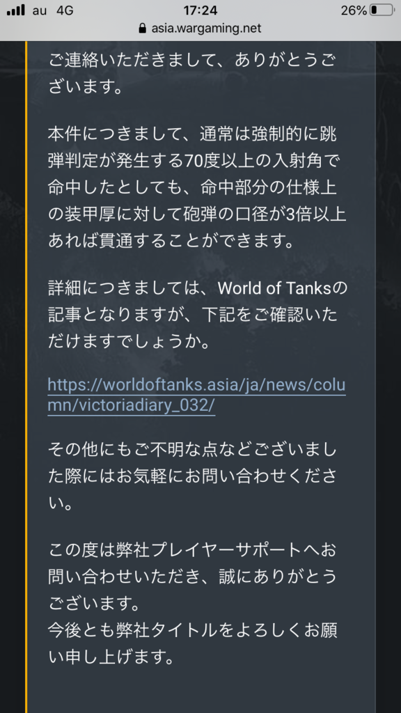 これがBlitzの答え。運営が返してきたurlの先に貼ってあったサイトにも3倍口径は跳弾しないと書いてあるので強制貫通だと受け取っている。