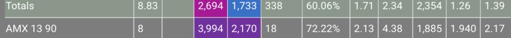 https://blitzhangar.com/en/tank/amx-13-90とhttps://blitzhangar.com/en/tank/ru-251で比べると僅差でamxが勝ってるんだよな。。。どういうこっちゃ?