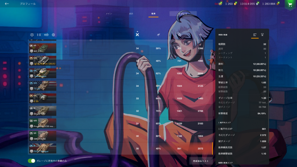 今の環境だと弱車両な気がする つらい 30戦勝率3割 (Tier10セルブロランク入り車両複数所持の実力)