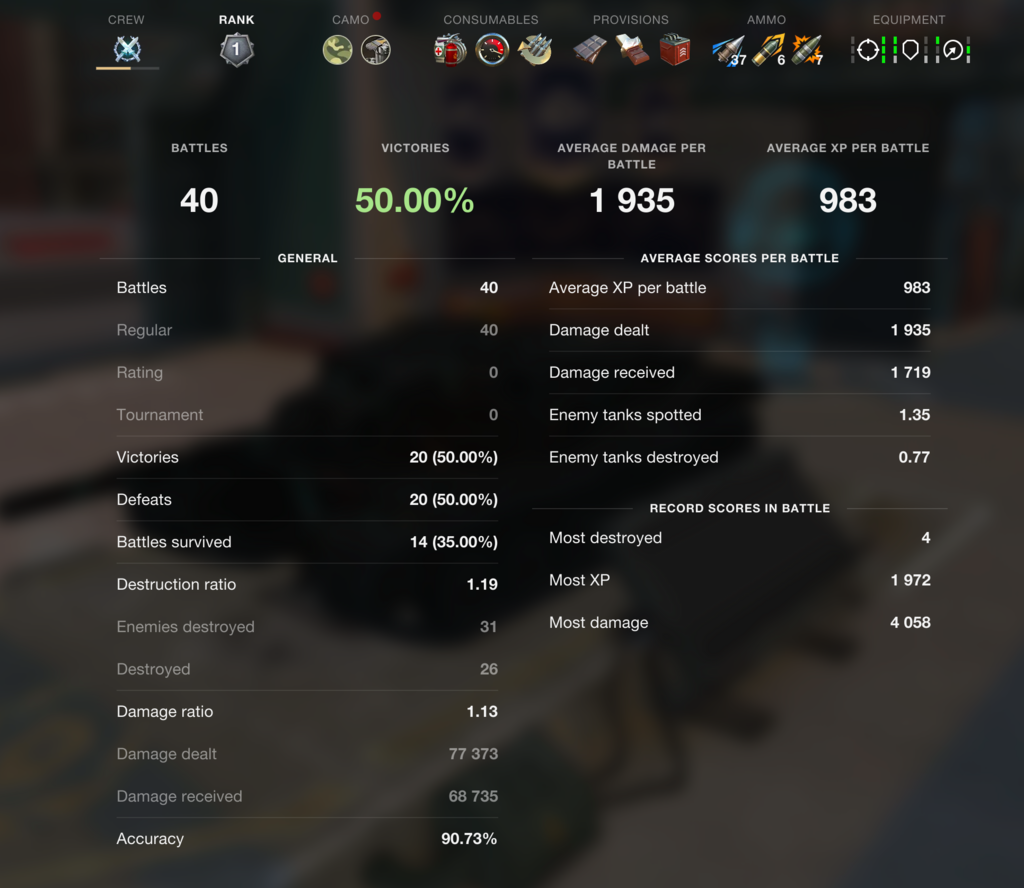 木主です。なんかめんどくさかったので無視していたのですが、私を擁護していただくコメントが多く見受けられたので590にコメントを返そうかと思います。私の軽はずみな言動で擁護していただいた皆様にはご迷惑をおかけしてしまい申し訳ありませんでした。 >明らかに自分が悪いのに戦車のせいにして ・私は別に戦車を貶すような発言はしていません… >見てて呆れと怒りが湧く ・アンガーマネジメントを試されてはいかがでしょうか? >頑固で自分が悪いのを認めない ・自分から論点をずらされておりませんか? >アナイアレーターみたいに燃える前に終わりにしよう。・火の元はあなたのコメントだと思われますが… >私も二度と愚痴にまじめにアドバイスしないよ。>ありがとうございます。今回の投稿はアドバイスというよりかは、自慢話に近いと思われます。590さんも悪気はなく、善意からのごコメントだったかと思われます。皆さんもあまり攻撃されないようお願いいたします。ちなみに、私の戦績は以下の通りです。僭越ながらアップロードさせていただきました。