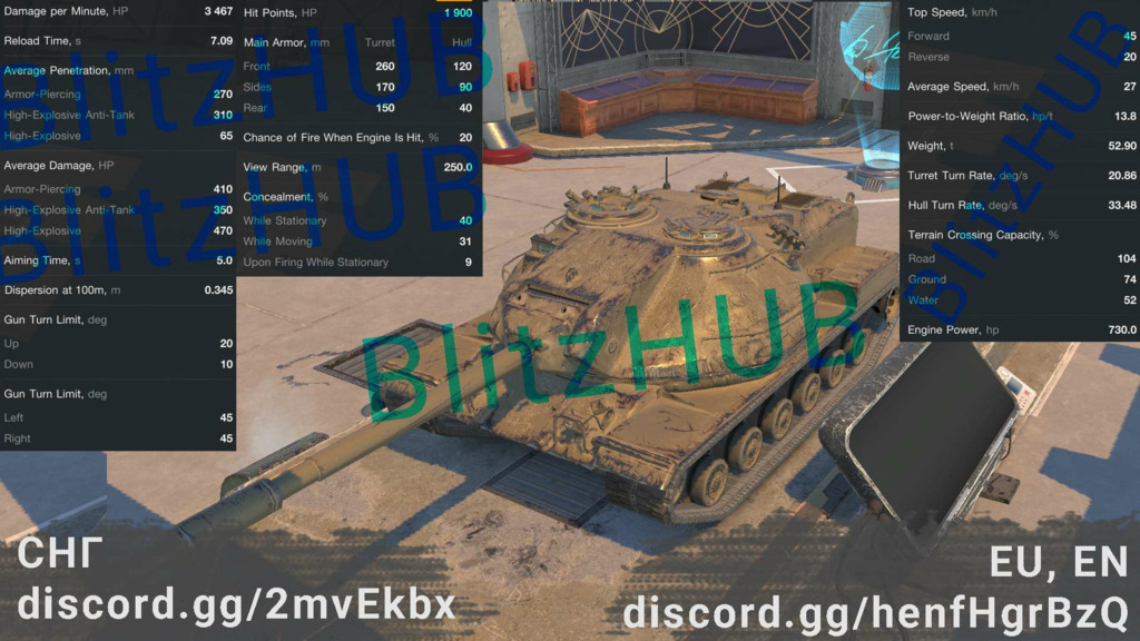 優れた砲塔装甲と便利な主砲俯角のおかげで、船体を下ろした位置から効果的にプレイし、マップ上のさまざまなオブジェクトを使用して装甲の弱い船体をカバーすることができます。便利な 120 mm 砲により、プレイヤーはあらゆる距離から砲撃を行うことができ、この TD は真に多用途です。