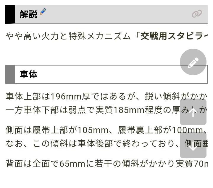 取り敢えず装甲や概要をアマスペなどを参考に記載。ただ画像のように文が改行されない表記バグが起こってます。プレビューでは問題ないので私のデバイスの問題だと思いますが…