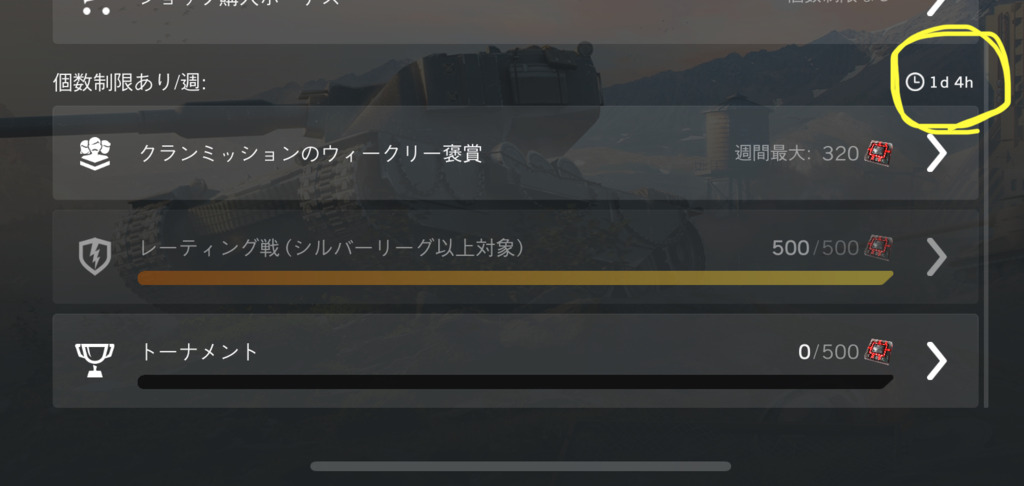 昨日夜11時にレーティングで、その週?か1日?、に集められる上限の500コア断片集め終わったんですけど、上らへんに1d15hって書いてあるんですけど、何の日にちと時間を表してるのか分からない