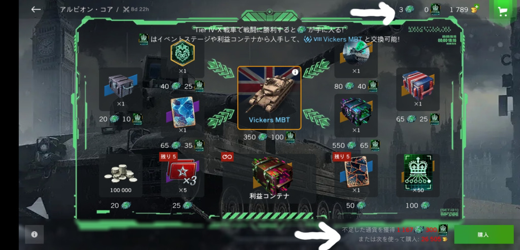 持ちの中戦車少ないから欲しいな買いかな。コンテナか販売か。んー