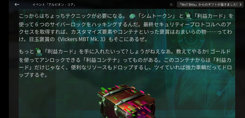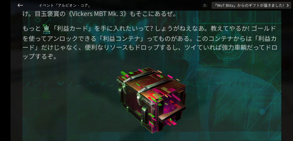 クレジットは無限にくれるんか思ったら1回だけやしちょっと残念 2000ゴールドでコンテナ買ったら確定と思うとまぁ良心的ではある阿