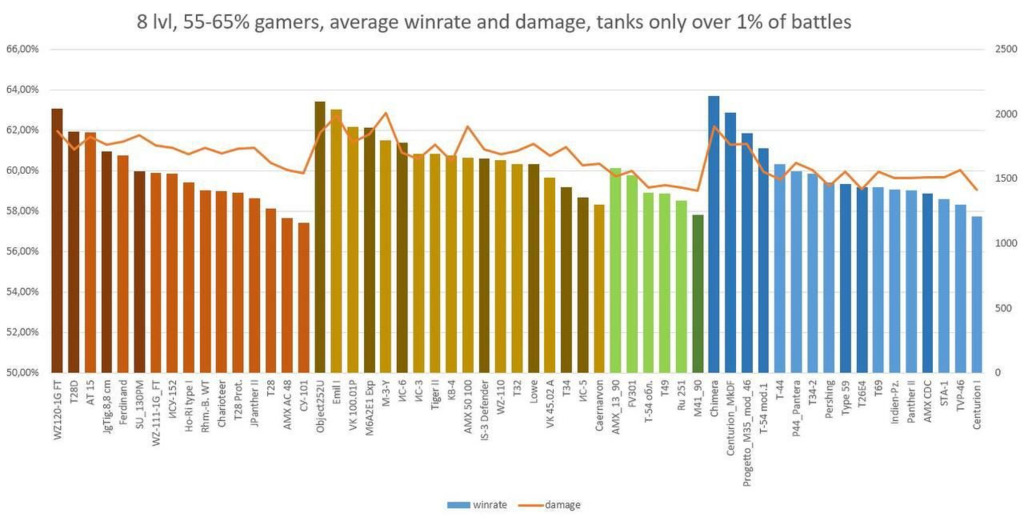 ↑MTはまあ順当なグラフやな(見事にPay to Win)、てかT-44がパンテラ抜いて通常ツリーMT内トップやんけ誰や弱いって言った奴