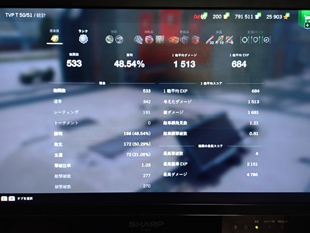 それに加えて生存率が勝率の48%の半分未満である21%というのも良くない。それは逆に言うと勝った試合の半分以上を味方に委ねているということなのよ。おそらくはTVPで試合序盤中盤に前に出過ぎて退路が無くなって死んでいるのだと俺は予想してる。アジア鯖は全体的に芋の傾向強くて積極的に前に出たい気持ちは死ぬほどわかるんだけど、もう少し慎重なプレイをした方がいいと思う。TVPなんてヘイト高くて装甲も頼りにならないんだから、特に試合序盤はパッシブな立ち回りと退路を確保すること、そしてできれば予想される敵の射線を意識しよう。