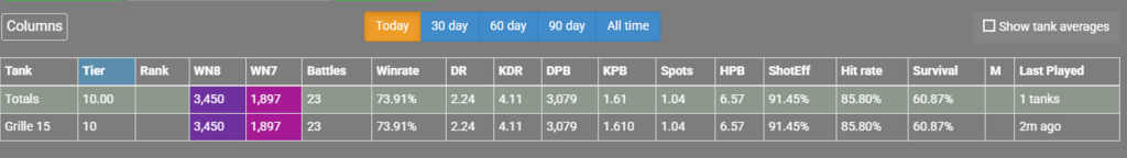 てことはGrilleの基準はWn8でいえば3500くらい?ただ183はもっと低い(Wn8換算で3200くらい?)から、車両によって結構取得難易度は変わりそう。