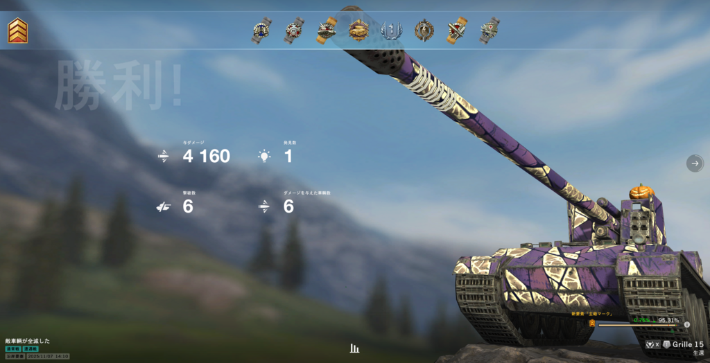とかなんとか言ってたら3優等取れた。ダメ落としてアドバイス通りにアシスト重視の立ち回り。あとWN8は3500もいらなかった。記録が途切れてるから分からないけど、3400くらいじゃないかな。