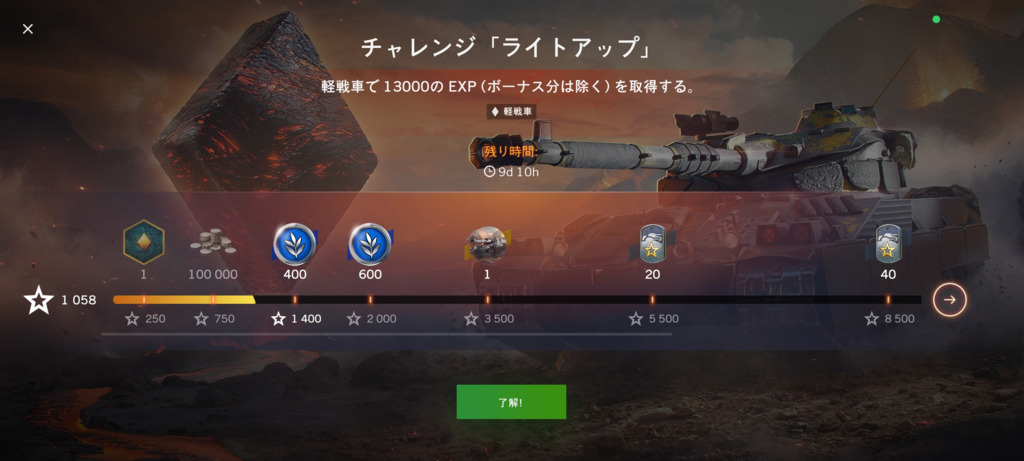 軽戦車でEXPを稼ぐクエストだった。これってランダム?それとも自分のよく乗る車種とか関係あるのかな?