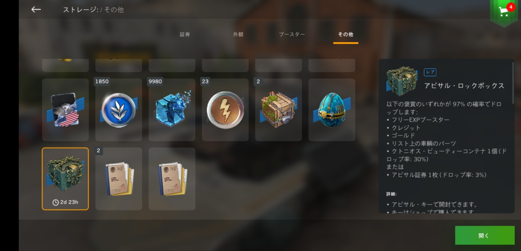 5式重諦めてたが、今朝1200円で5式重コンテナ5箱とゴールドやプレ垢などのおまけ付きのオファーが来てて、まぁ1200円くらいならと買ってみたら1箱目で5式重来た!